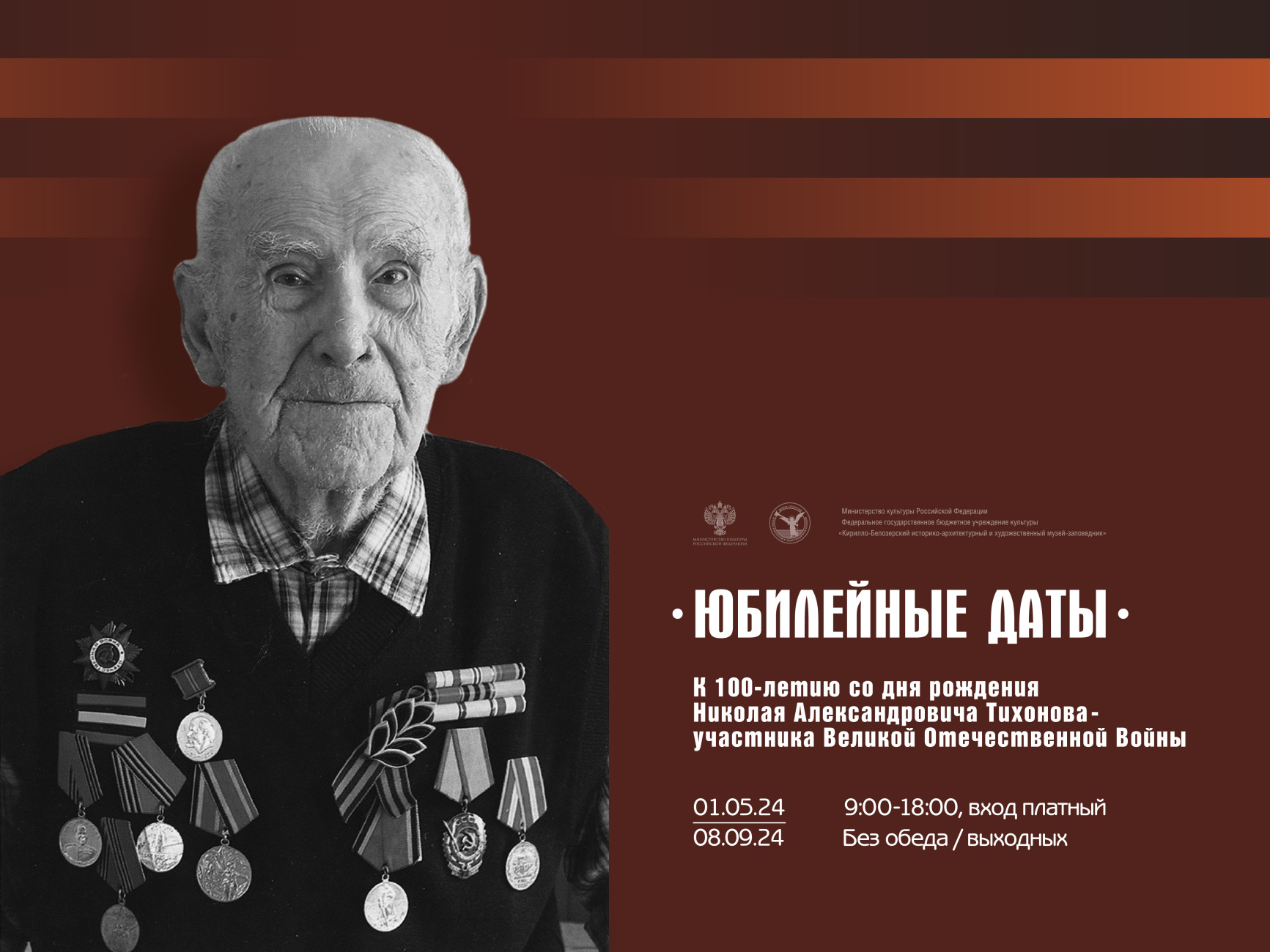 Выставка, открытая ко Дню Победы, посвящена участнику войны Николаю Васильевичу Тихонову. За его плечами богатая фронтовая биография: воевал в разведке, трижды ранен и один раз контужен, удостоен многих боевых наград. 27 августа 2024 года исполнится 100 лет со дня рождения Николая Васильевича.