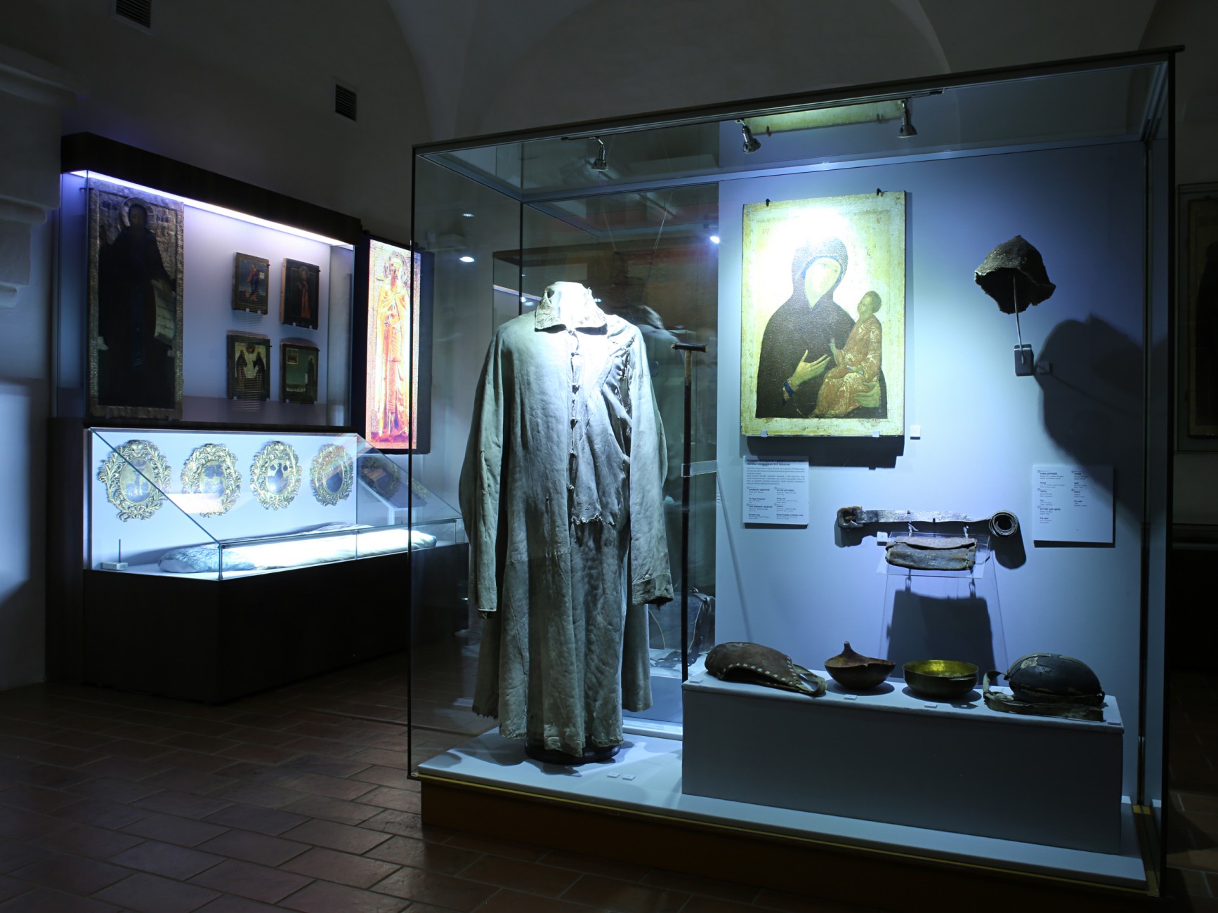 Экспозиция находится в 1 зале Трапезной палаты и повествует об основании монастыря и преподобном Кирилле Белозерском.В экспозиции представлены уникальные памятники, связанные с именем святого подвижника Белозерского края.